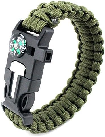FERRAMENTA DE SOBREVIVÊNCIA 5 EM 1: Equipada com uma bússola de alta qualidade, pederneira, apito de emergência, corda de paraquedas de 3,6 m e ferramenta multifuncional. Acessório ideal para aventuras ao ar livre. TAMANHO AJUSTÁVEL: Concebida para se adaptar a diferentes tamanhos de pulso, as nossas pulseiras de sobrevivência são ajustáveis de 20,5 cm a 25,5 cm, garantindo um ajuste perfeito para todos. VERSÁTIL & REMOVÍVEL: Inclui um raspador e uma pederneira removíveis que servem de ferramentas multifuncionais, incluindo uma lâmina de serra e um poste de bambu. Essencial para cenários de sobrevivência. NAVEGAÇÃO INTEGRADA: Navegue facilmente na natureza graças ao apito integrado para sinalizar e à bússola para a direção. Indispensável para caminhantes e amantes de atividades ao ar livre. EQUIPAMENTO DE SOBREVIVÊNCIA ULTIMATE: Esta pulseira compacta e tática de paracord é o seu equipamento de sobrevivência indispensável, reunindo todas as funcionalidades essenciais para sobreviver na natureza.